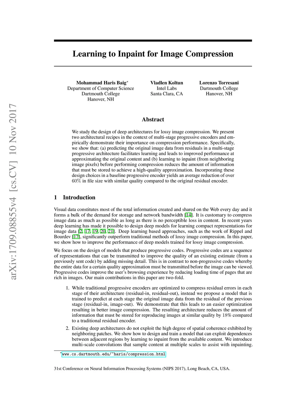 Learning to Inpaint for Image Compression