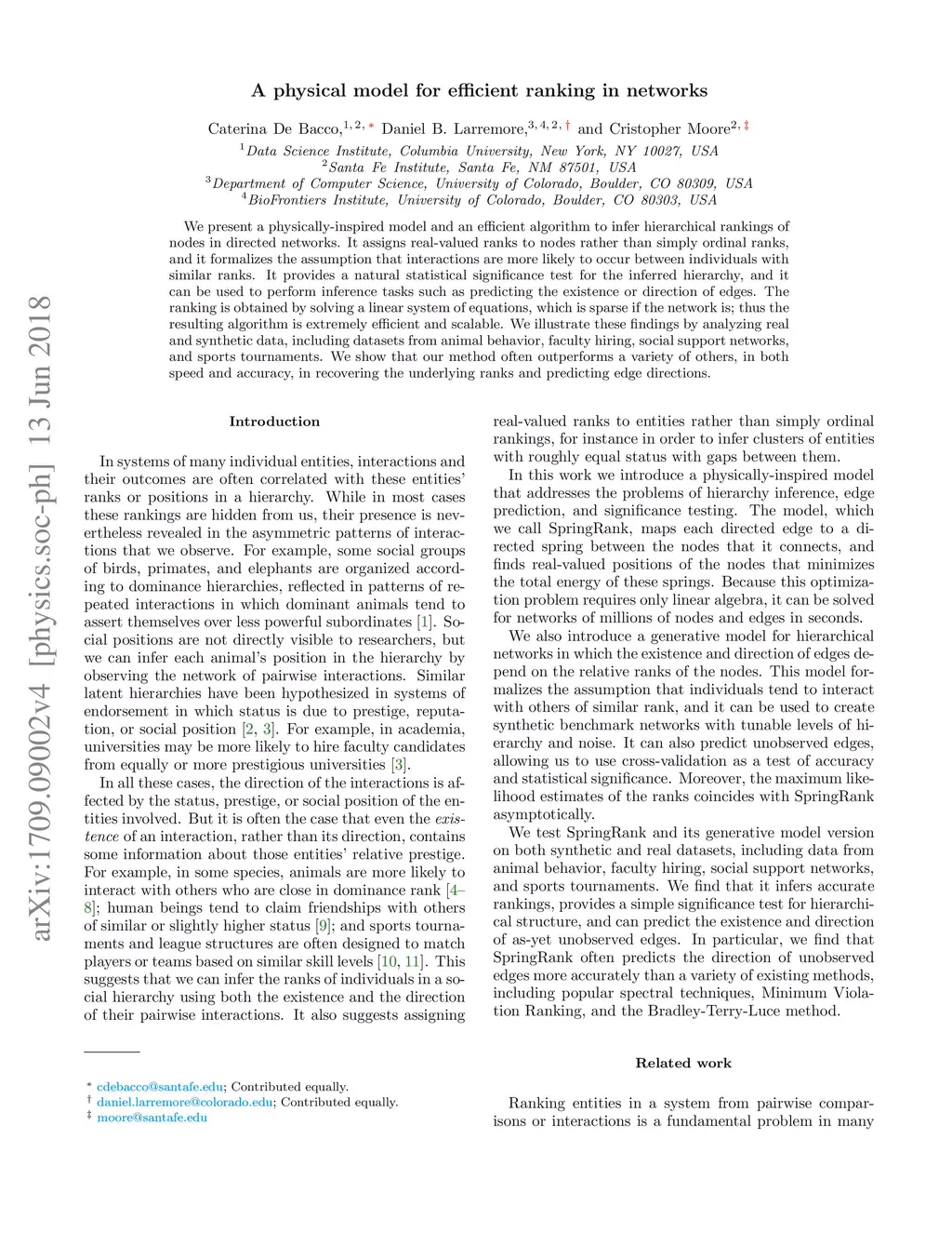 A physical model for efficient ranking in networks