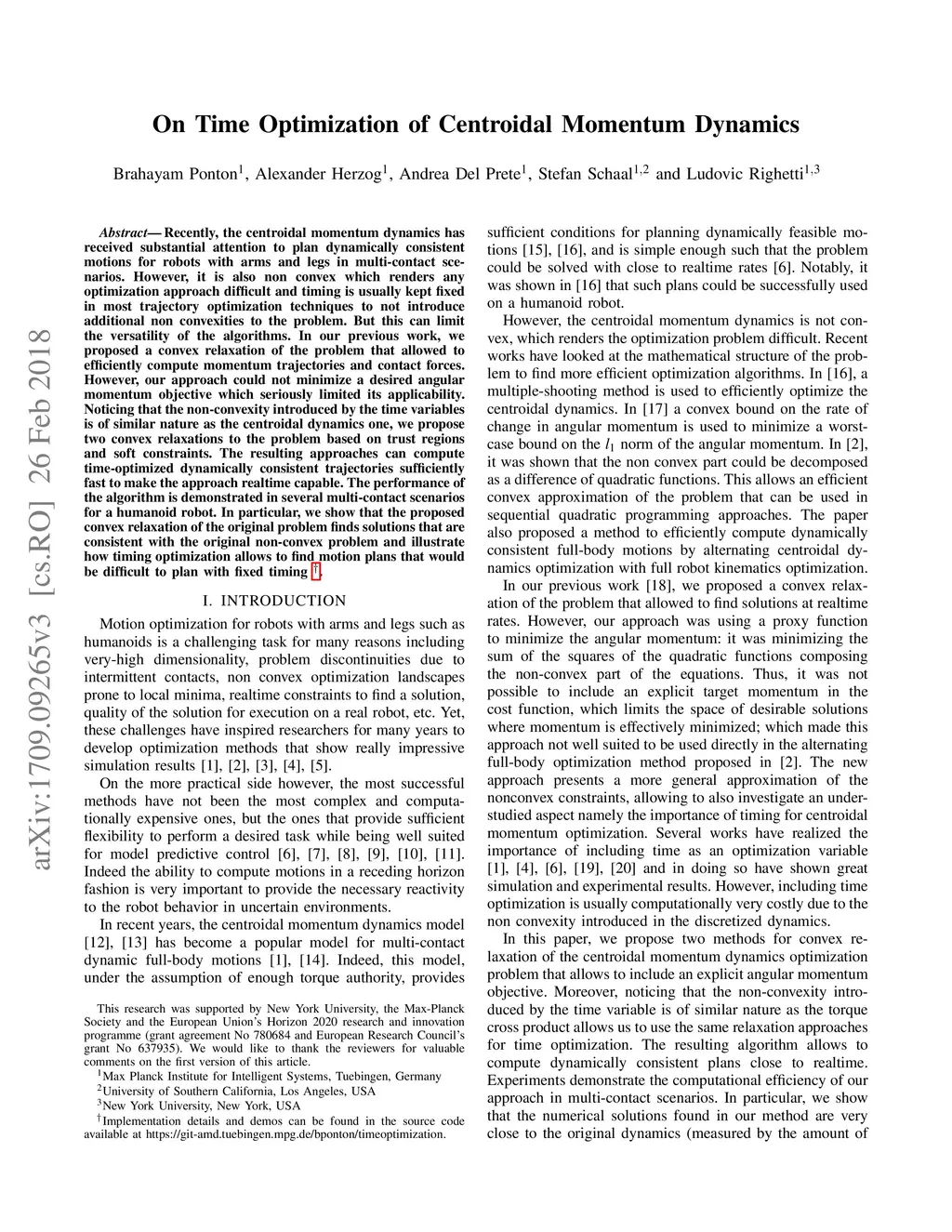 On Time Optimization of Centroidal Momentum Dynamics