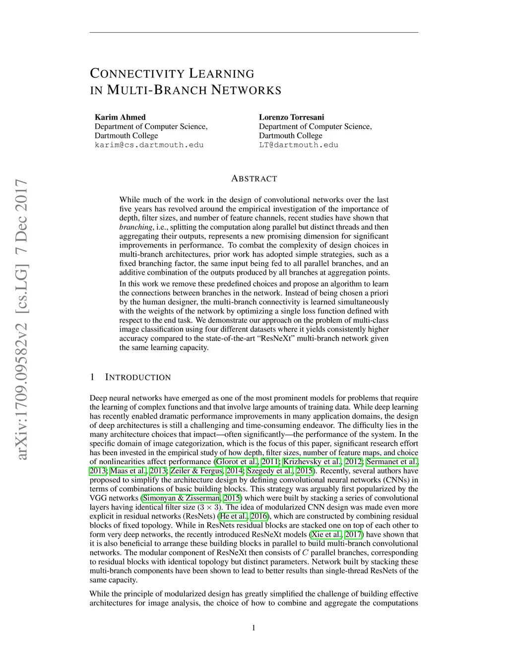 Connectivity Learning in Multi-Branch Networks