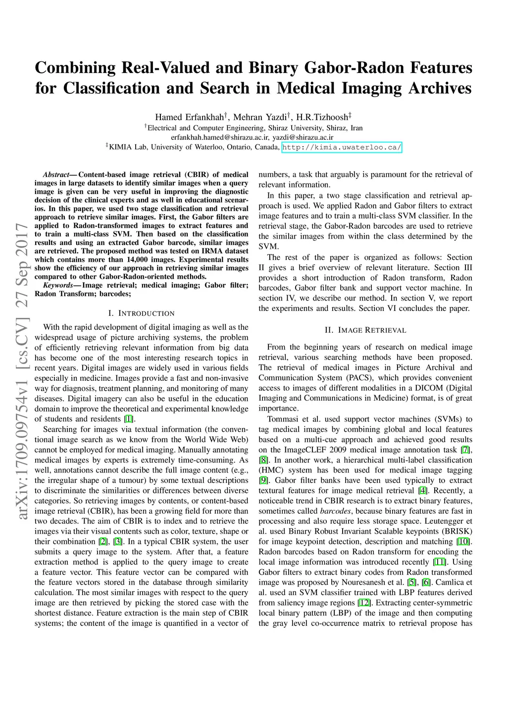 Combining Real-Valued and Binary Gabor-Radon Features for Classification