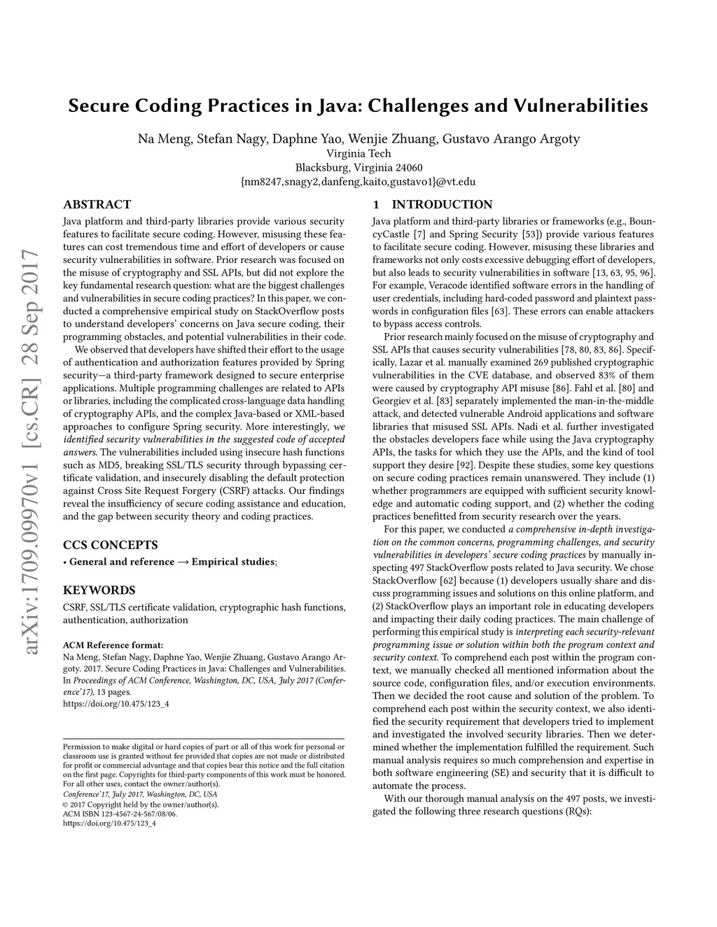 Secure Coding Practices in Java: Challenges and Vulnerabilities