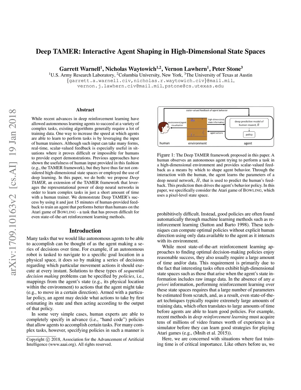 Deep TAMER: Interactive Agent Shaping in High-Dimensional State Spaces