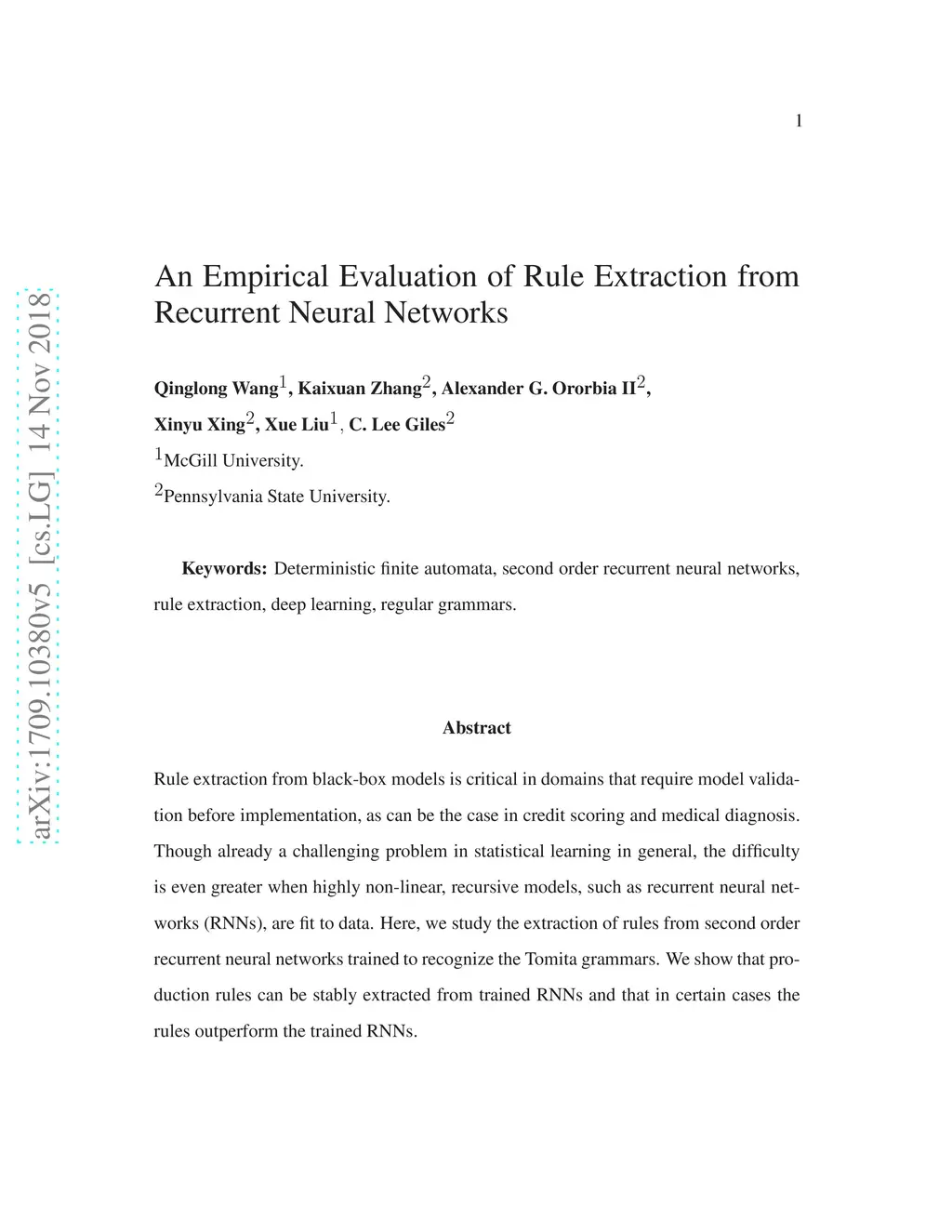 Rule extraction from black-box models is critical in domains that require model validation before implementation, as can be the case in credit scoring and medical diagnosis. Though already a challenging problem in statistical learning in general, the difficulty is even greater when highly non-linear, recursive models, such as recurrent neural networks (RNNs), are fit to data. Here, we study the extraction of rules from second-order recurrent neural networks trained to recognize the Tomita grammars. We show that production rules can be stably extracted from trained RNNs and that in certain cases the rules outperform the trained RNNs.