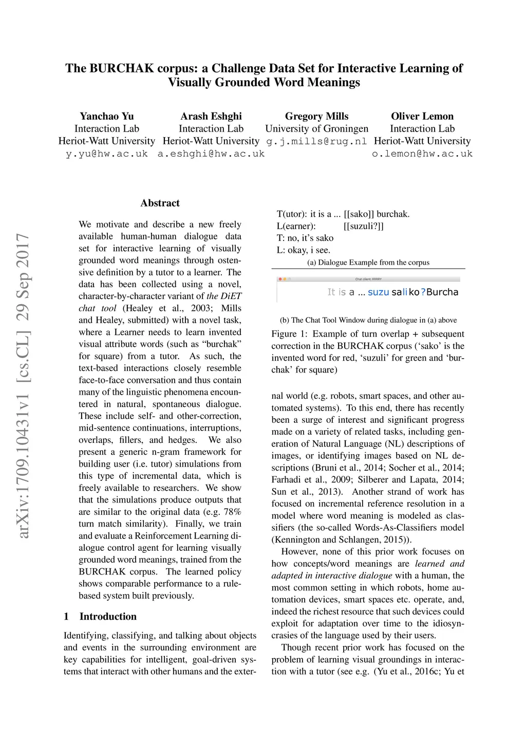 The BURCHAK corpus: a Challenge Data Set for Interactive Learning of
