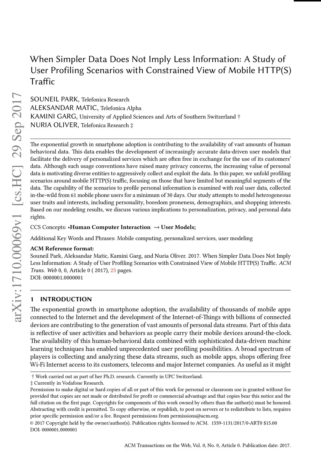 The exponential growth in smartphone adoption is contributing to the availability of vast amounts of human behavioral data. This data enables the development of increasingly accurate data-driven user models that facilitate the delivery of personalized services which are often free in exchange for the use of its customers' data. Although such usage conventions have raised many privacy concerns, the increasing value of personal data is motivating diverse entities to aggressively collect and exploit the data. In this paper, we unfold profiling scenarios around mobile HTTP(S) traffic, focusing on those that have limited but meaningful segments of the data. The capability of the scenarios to profile personal information is examined with real user data, collected in-the-wild from 61 mobile phone users for a minimum of 30 days. Our study attempts to model heterogeneous user traits and interests, including personality, boredom proneness, demographics, and shopping interests. Based on our modeling results, we discuss various implications to personalization, privacy, and personal data rights.