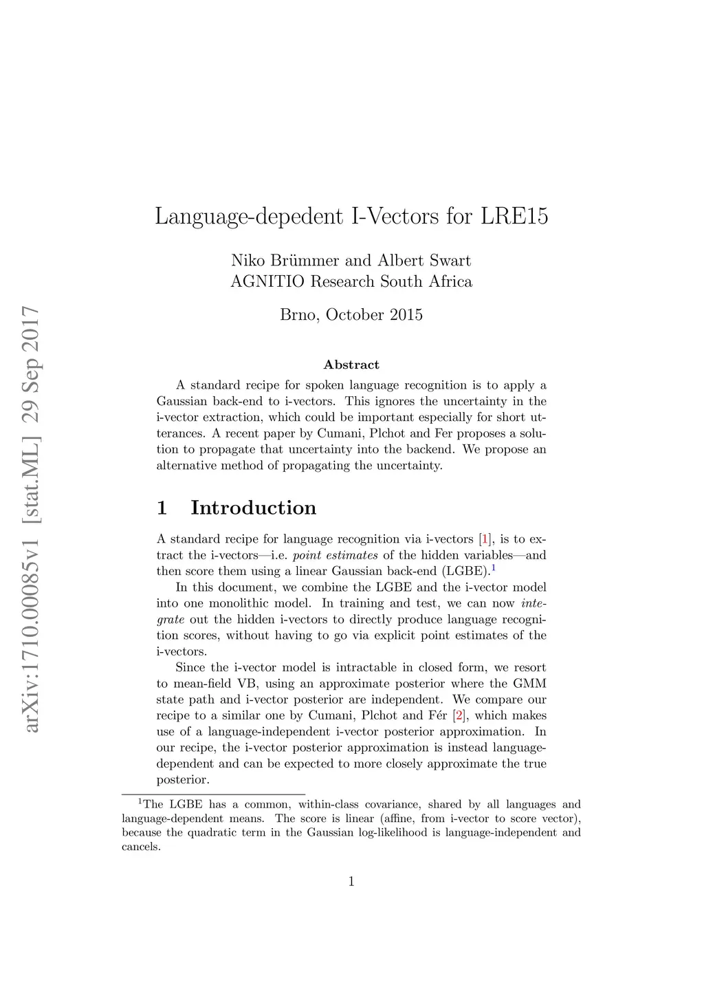 Language-depedent I-Vectors for LRE15