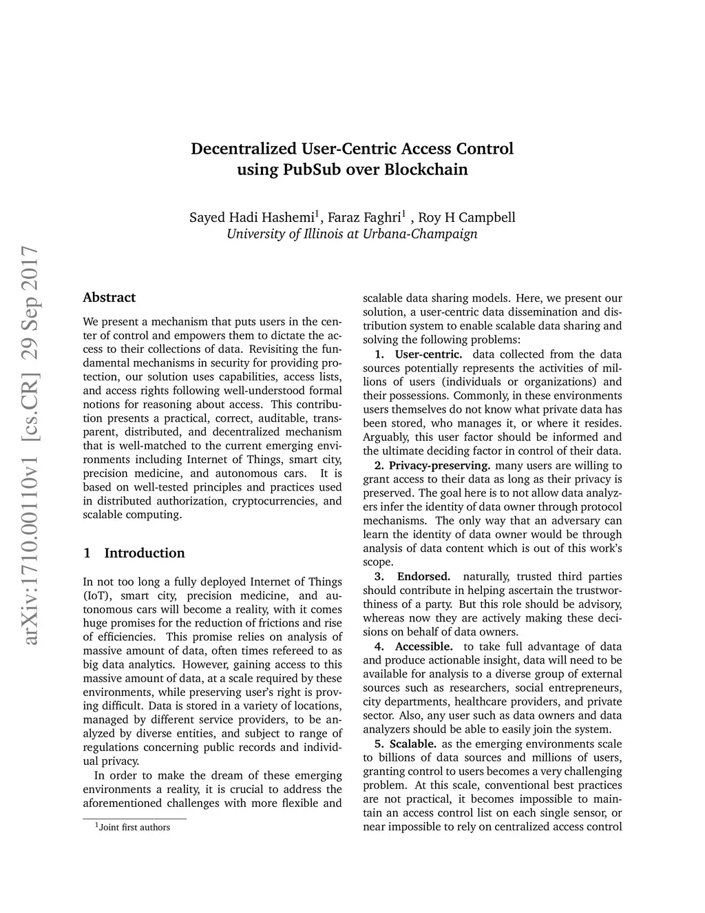 We present a mechanism that puts users in the center of control and empowers them to dictate the access to their collections of data. Revisiting the fundamental mechanisms in security for providing protection, our solution uses capabilities, access lists, and access rights following well-understood formal notions for reasoning about access. This contribution presents a practical, correct, auditable, transparent, distributed, and decentralized mechanism that is well-matched to the current emerging environments including Internet of Things, smart city, precision medicine, and autonomous cars. It is based on well-tested principles and practices used in a distributed authorization, cryptocurrencies, and scalable computing.
