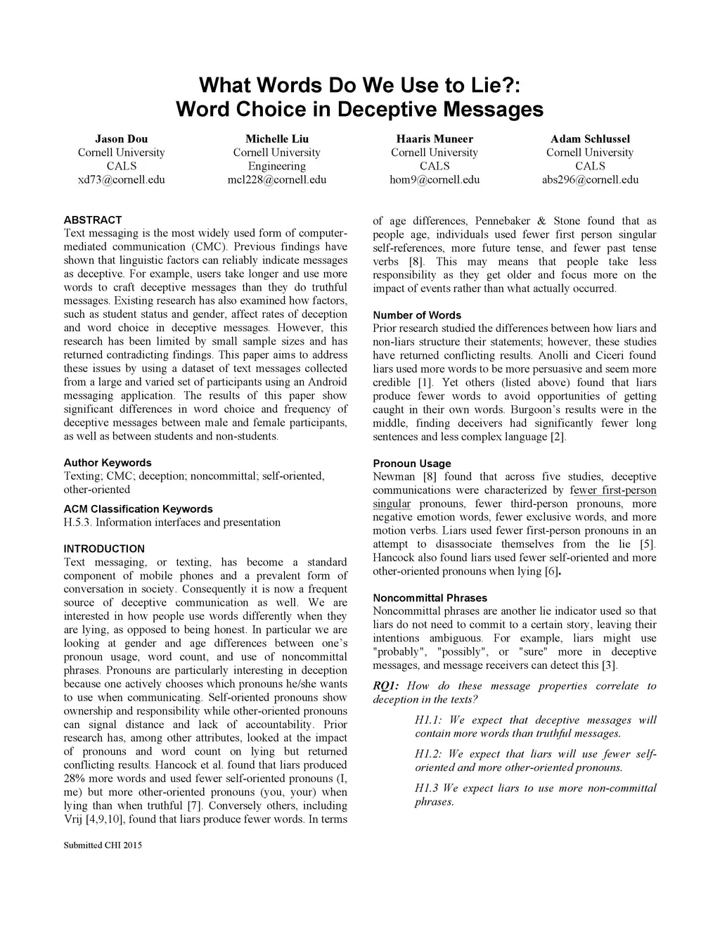 What Words Do We Use to Lie?: Word Choice in Deceptive Messages