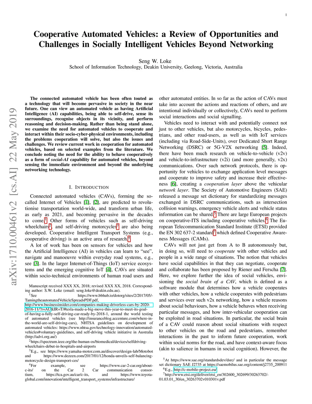 The connected automated vehicle has been often touted as a technology that will become pervasive in society in the near future. One can view an automated vehicle as having Artificial Intelligence (AI) capabilities, being able to self-drive, sense its surroundings, recognise objects in its vicinity, and perform reasoning and decision-making. Rather than being stand alone, we examine the need for automated vehicles to cooperate and interact within their socio-cyber-physical environments, including the problems cooperation will solve, but also the issues and challenges. We review current work in cooperation for automated vehicles, based on selected examples from the literature. We conclude noting the need for the ability to behave cooperatively as a form of social-AI capability for automated vehicles, beyond sensing the immediate environment and beyond the underlying networking technology.