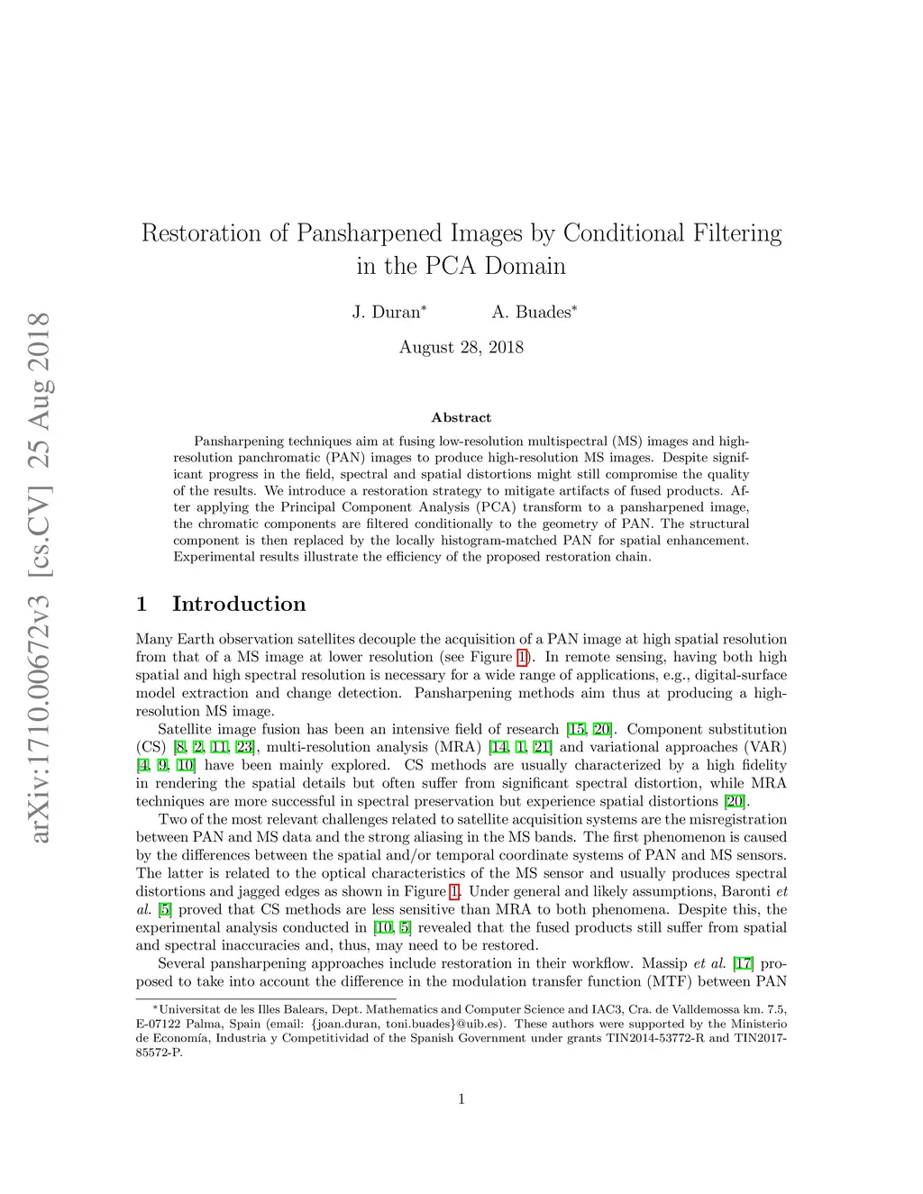 Restoration of Pansharpened Images by Conditional Filtering in the PCA