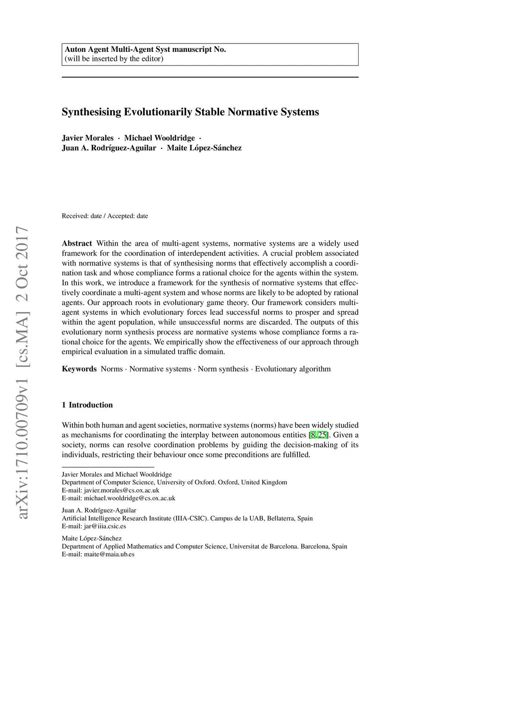 Within the area of multi-agent systems, normative systems are a widely used framework for the coordination of interdependent activities. A crucial problem associated with normative systems is that of synthesising norms that effectively accomplish a coordination task and whose compliance forms a rational choice for the agents within the system. In this work, we introduce a framework for the synthesis of normative systems that effectively coordinate a multi-agent system and whose norms are likely to be adopted by rational agents. Our approach roots in evolutionary game theory. Our framework considers multi-agent systems in which evolutionary forces lead successful norms to prosper and spread within the agent population, while unsuccessful norms are discarded. The outputs of this evolutionary norm synthesis process are normative systems whose compliance forms a rational choice for the agents. We empirically show the effectiveness of our approach through empirical evaluation in a simulated traffic domain.