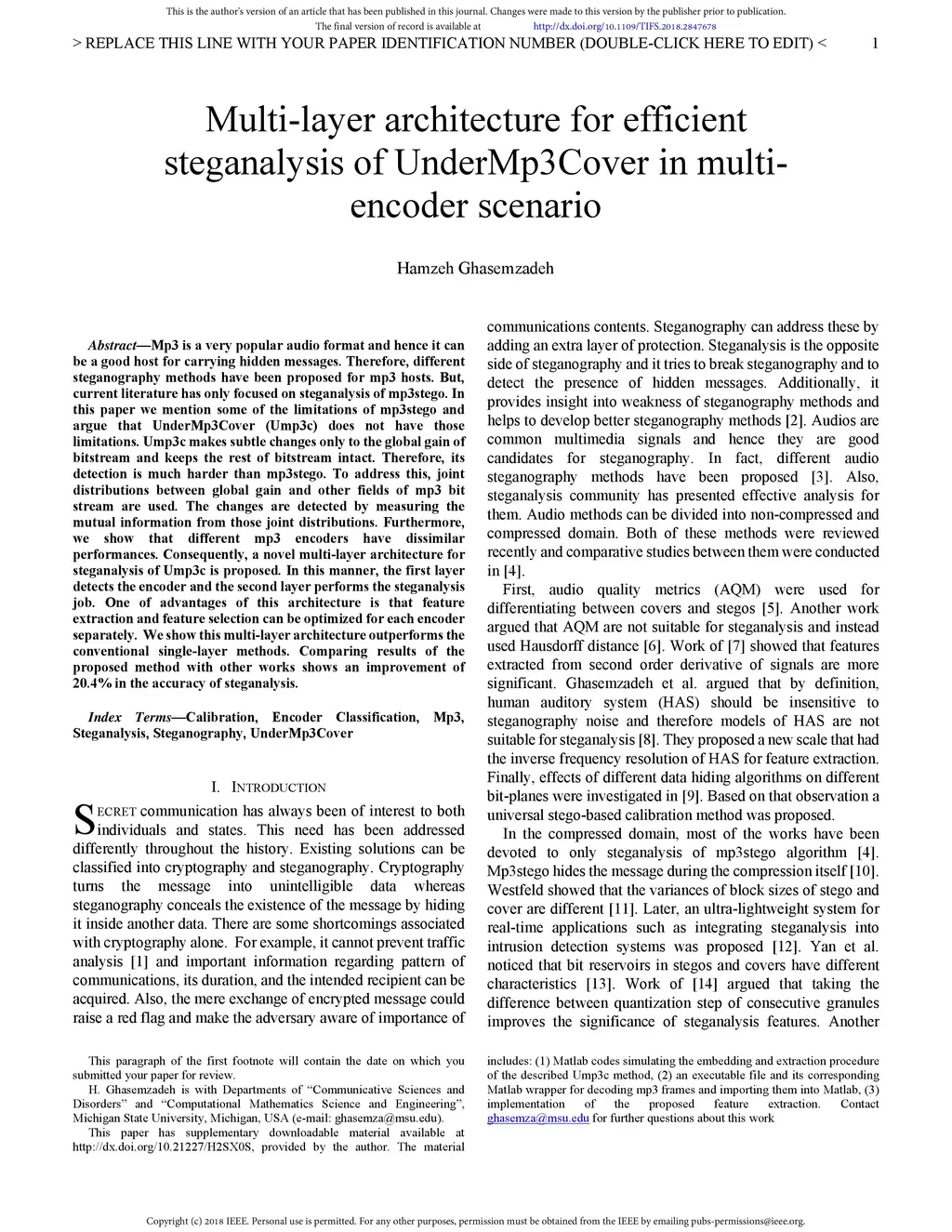 Multi-layer architecture for efficient steganalysis of Undermp3cover in