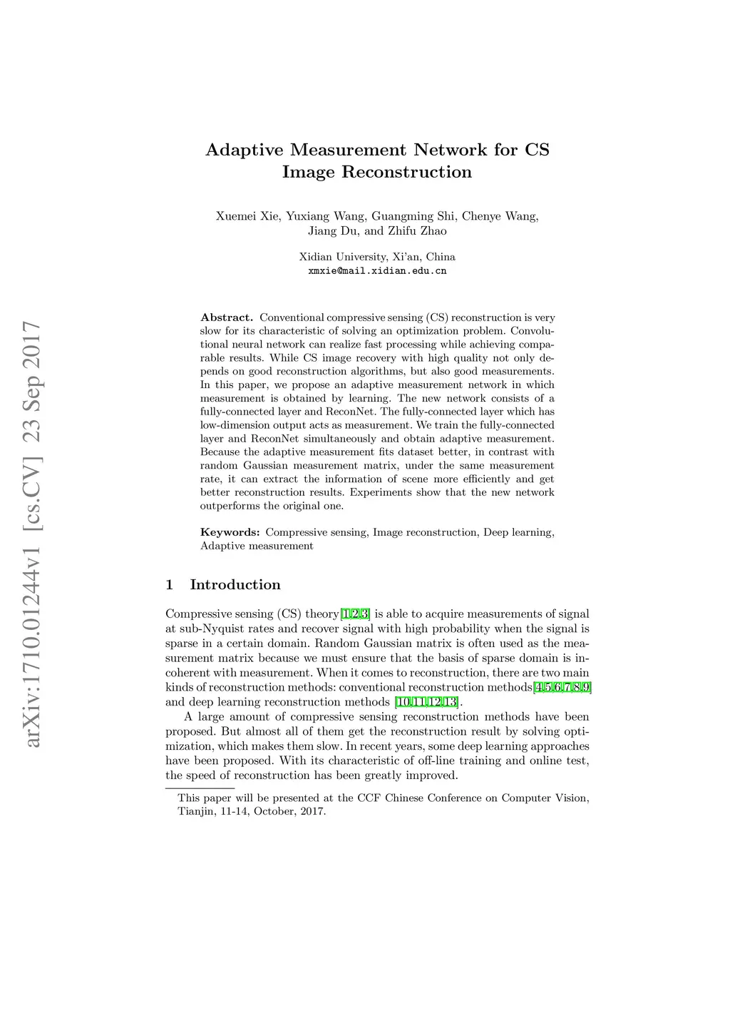 Adaptive Measurement Network for CS Image Reconstruction
