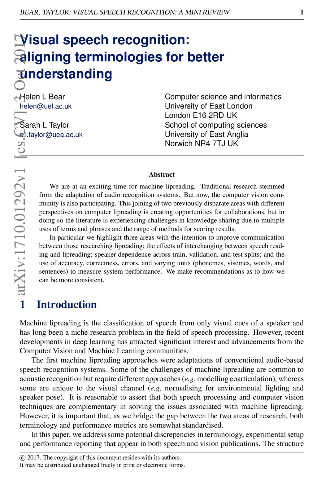 Visual speech recognition: aligning terminologies for better