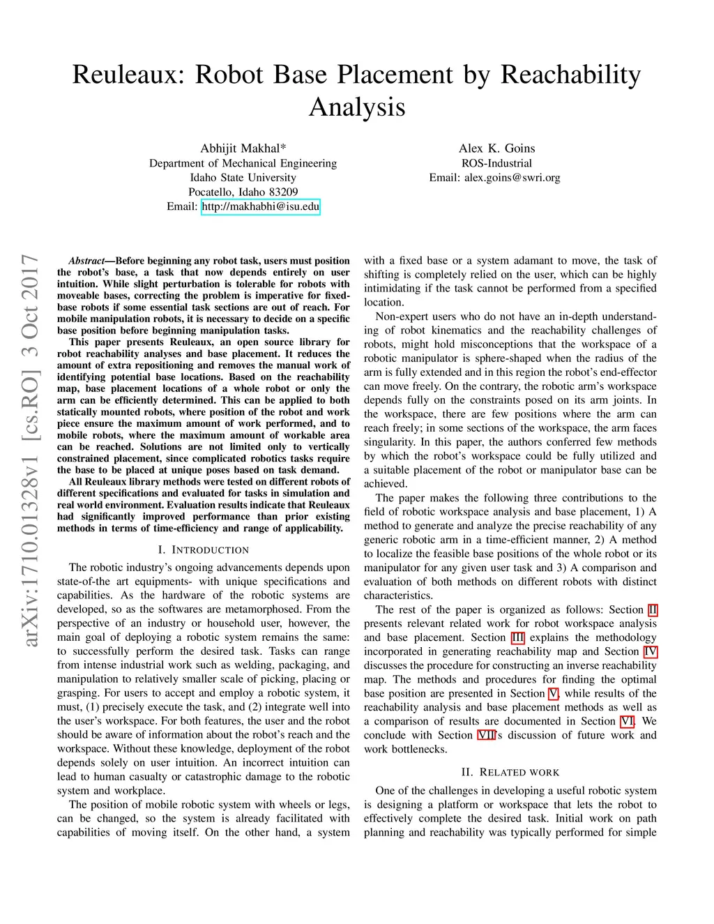 Before beginning any robot task, users must position the robot's base, a task that now depends entirely on user intuition. While slight perturbation is tolerable for robots with moveable bases, correcting the problem is imperative for fixed-base robots if some essential task sections are out of reach. For mobile manipulation robots, it is necessary to decide on a specific base position before beginning manipulation tasks. This paper presents Reuleaux, an open source library for robot reachability analyses and base placement. It reduces the amount of extra repositioning and removes the manual work of identifying potential base locations. Based on the reachability map, base placement locations of a whole robot or only the arm can be efficiently determined. This can be applied to both statically mounted robots, where position of the robot and work piece ensure the maximum amount of work performed, and to mobile robots, where the maximum amount of workable area can be reached. Solutions are not limited only to vertically constrained placement, since complicated robotics tasks require the base to be placed at unique poses based on task demand. All Reuleaux library methods were tested on different robots of different specifications and evaluated for tasks in simulation and real world environment. Evaluation results indicate that Reuleaux had significantly improved performance than prior existing methods in terms of time-efficiency and range of applicability.
