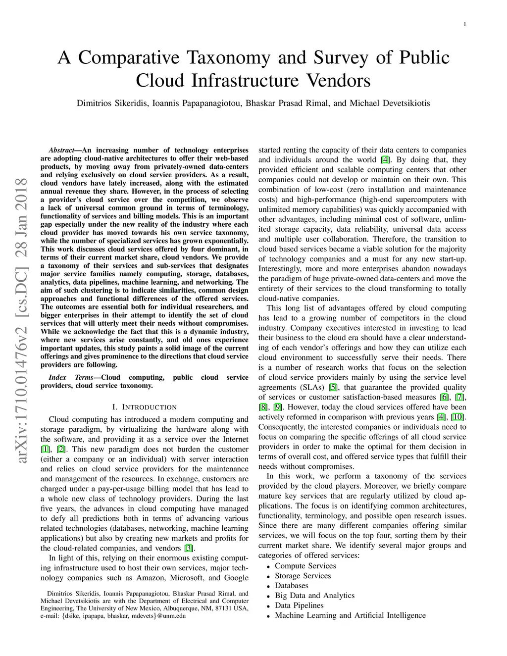A Comparative Taxonomy and Survey of Public Cloud Infrastructure Vendors