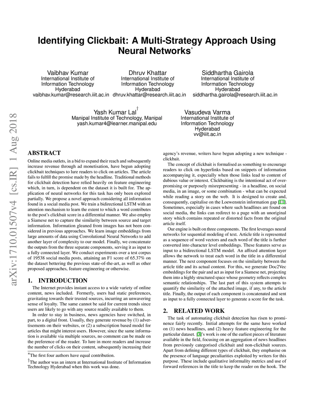 Identifying Clickbait: A Multi-Strategy Approach Using Neural Networks