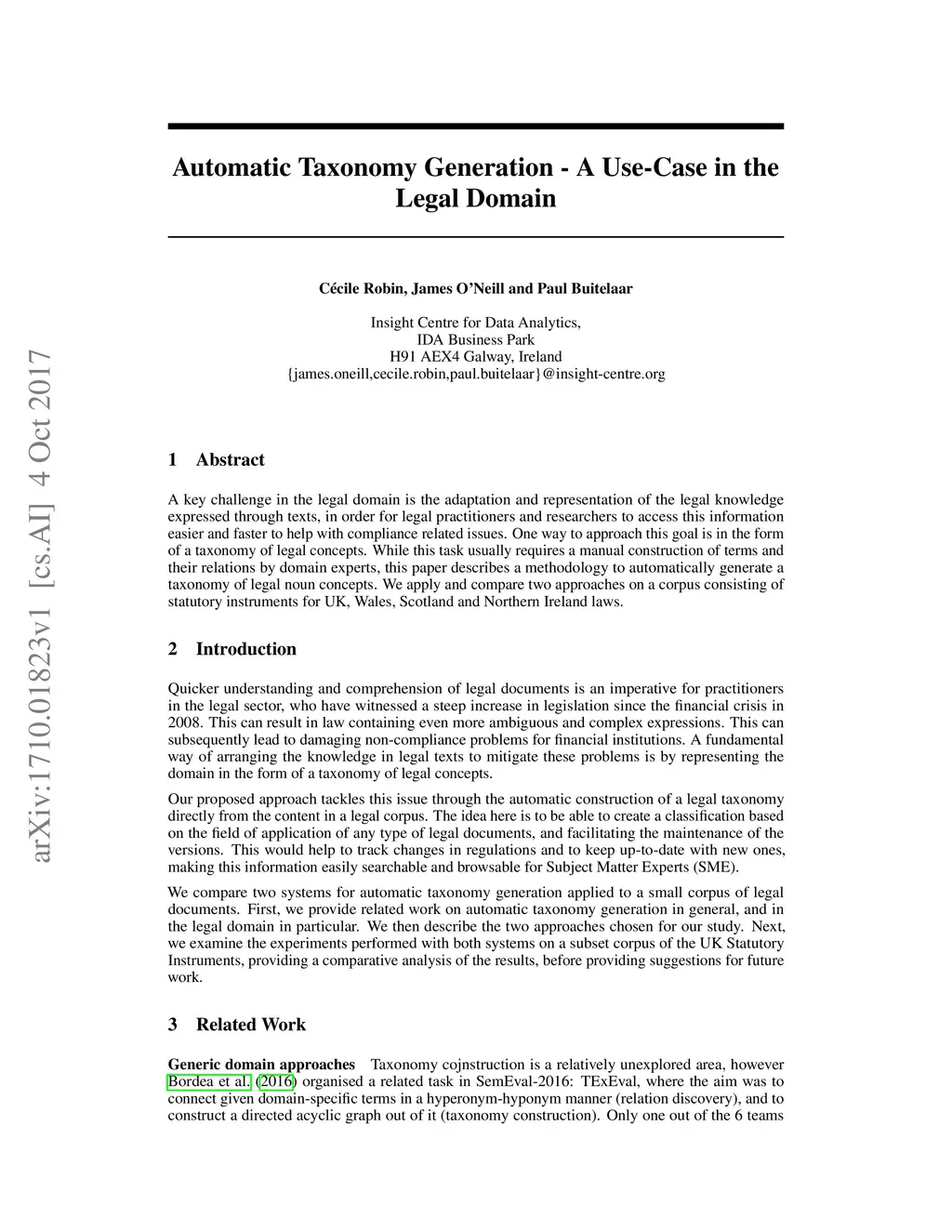Automatic Taxonomy Generation - A Use-Case in the Legal Domain