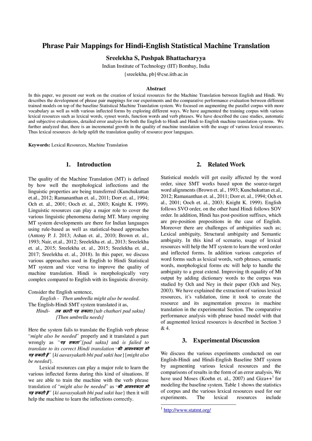 Phrase Pair Mappings for Hindi-English Statistical Machine Translation