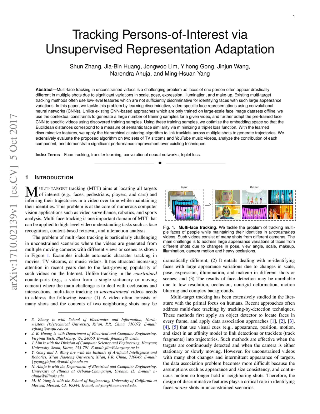 Tracking Persons-of-Interest via Unsupervised Representation Adaptation