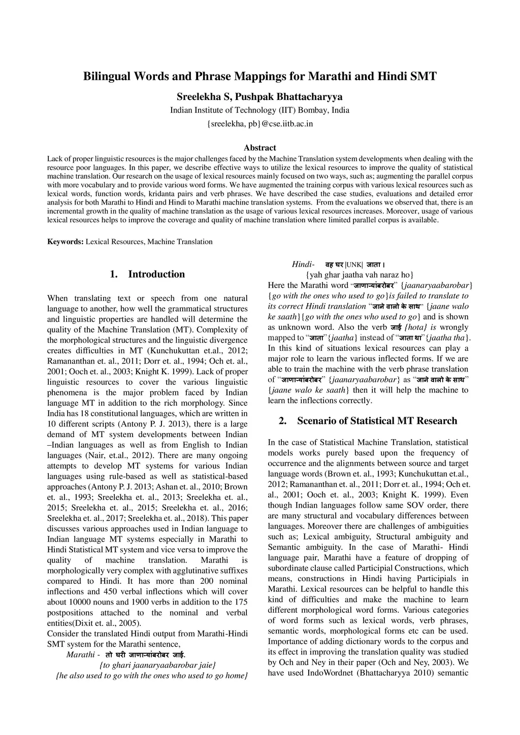 Bilingual Words and Phrase Mappings for Marathi and Hindi SMT