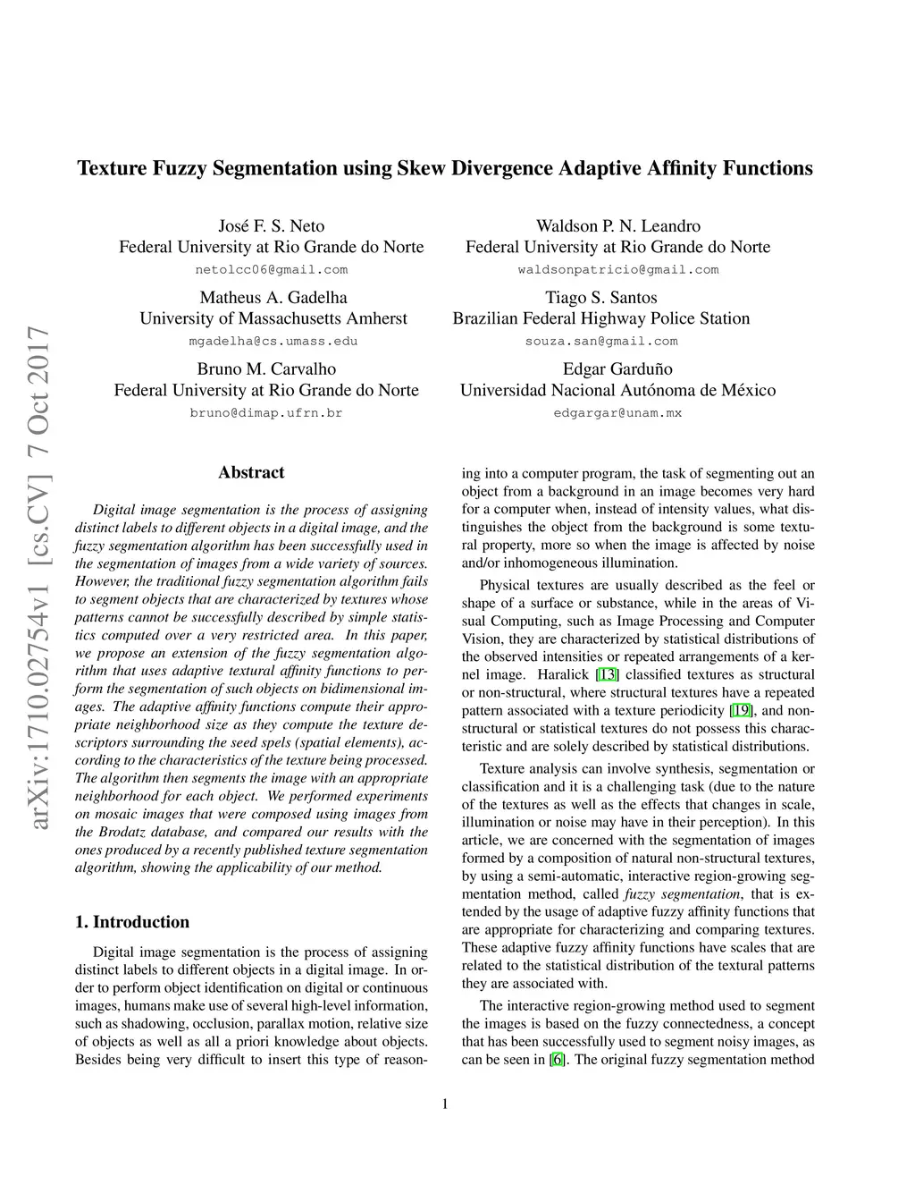 Texture Fuzzy Segmentation using Skew Divergence Adaptive Affinity