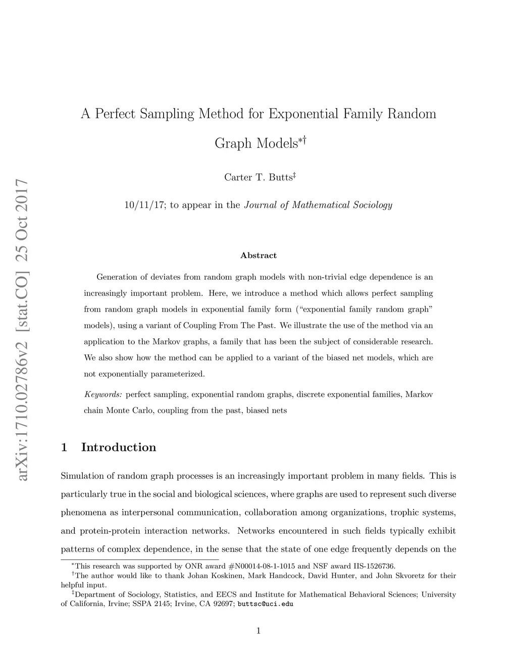 A Perfect Sampling Method for Exponential Family Random Graph Models