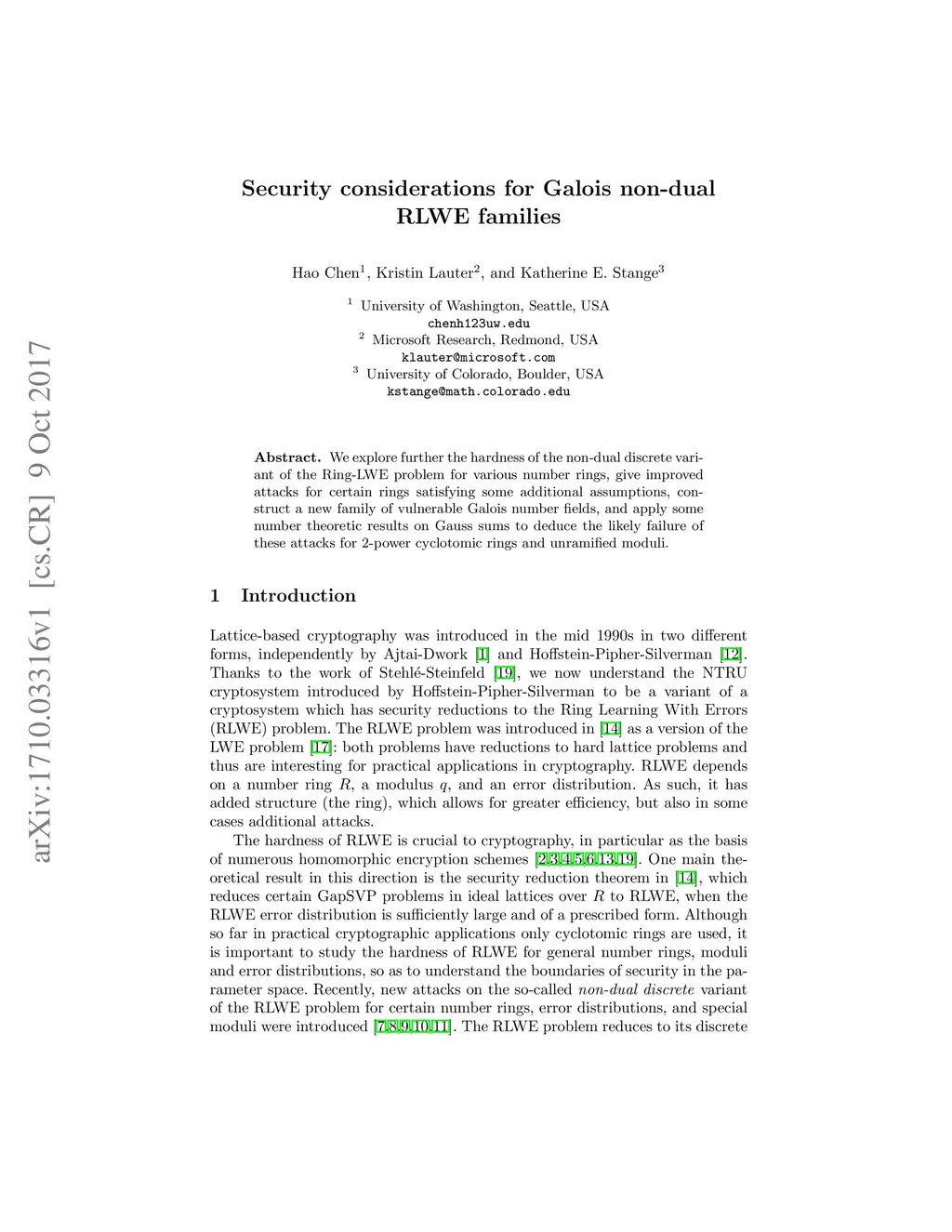 Security considerations for Galois non-dual RLWE families
