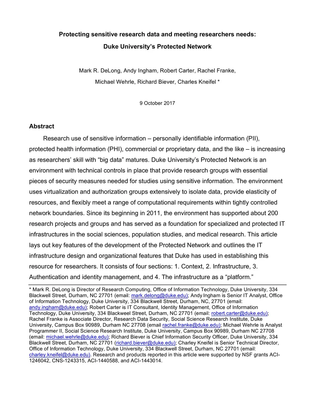 Protecting sensitive research data and meeting researchers needs: Duke