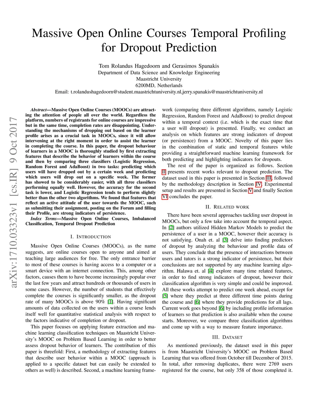 Massive Open Online Courses Temporal Profiling for Dropout Prediction