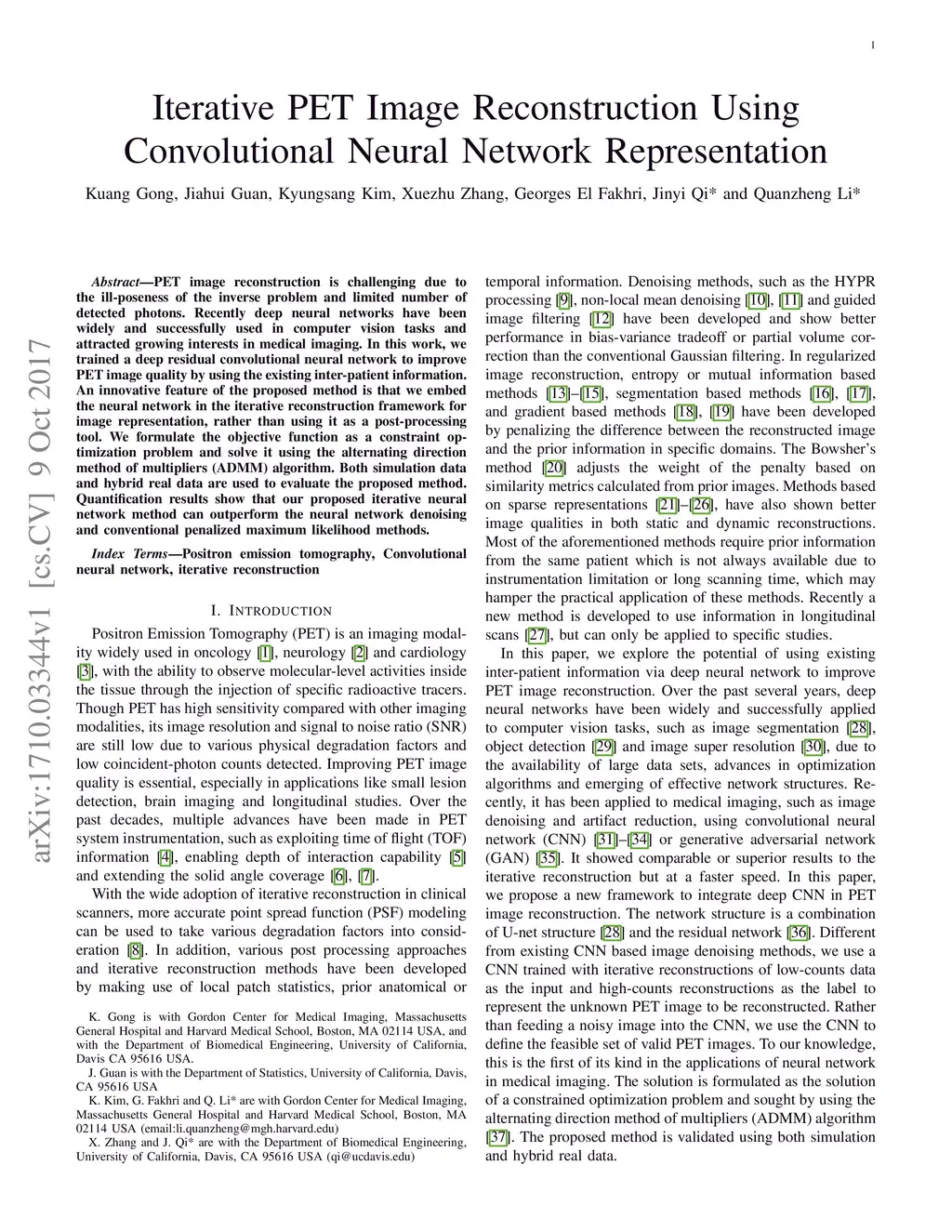 Iterative PET Image Reconstruction Using Convolutional Neural Network