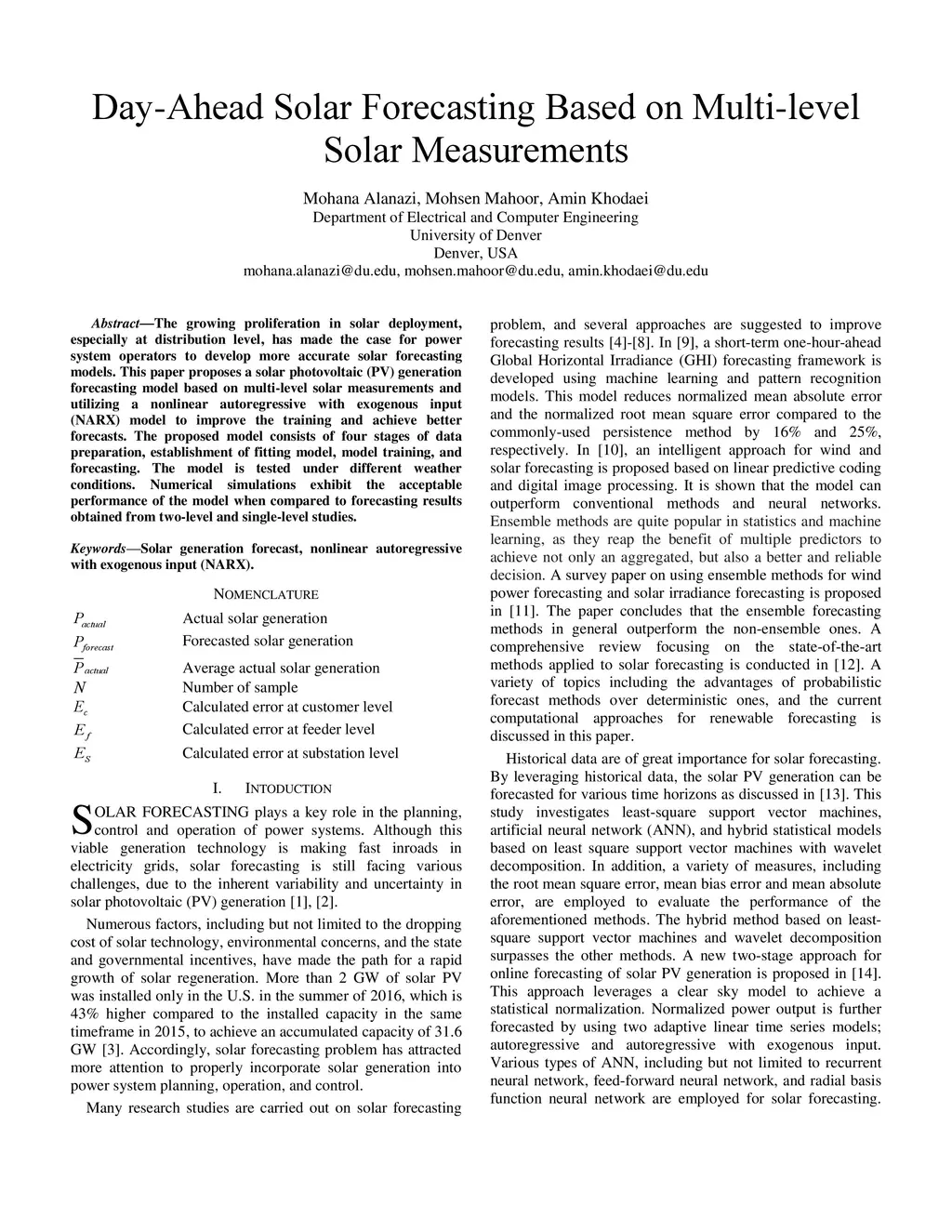 Day-Ahead Solar Forecasting Based on Multi-level Solar Measurements