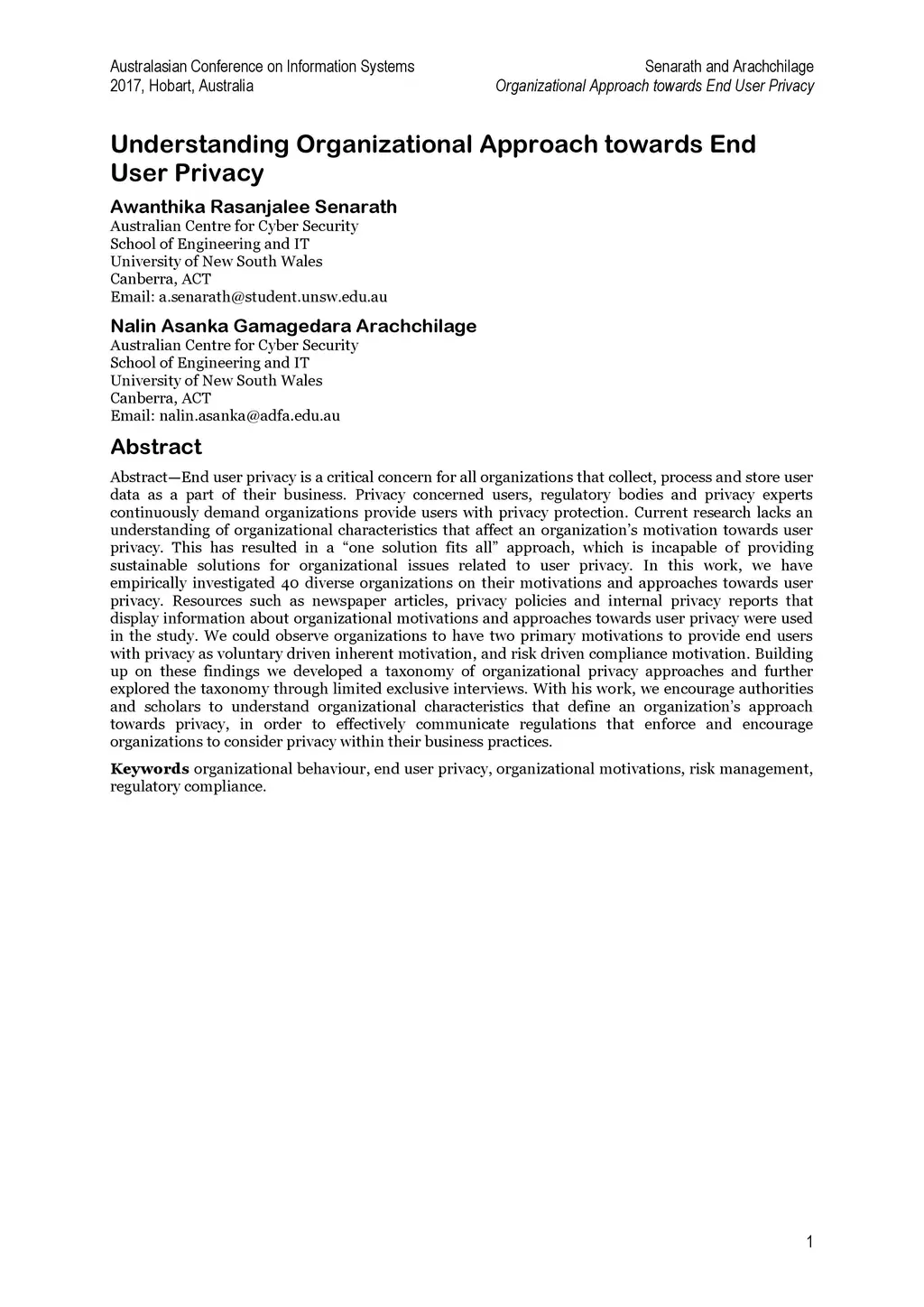 Understanding Organizational Approach towards End User Privacy