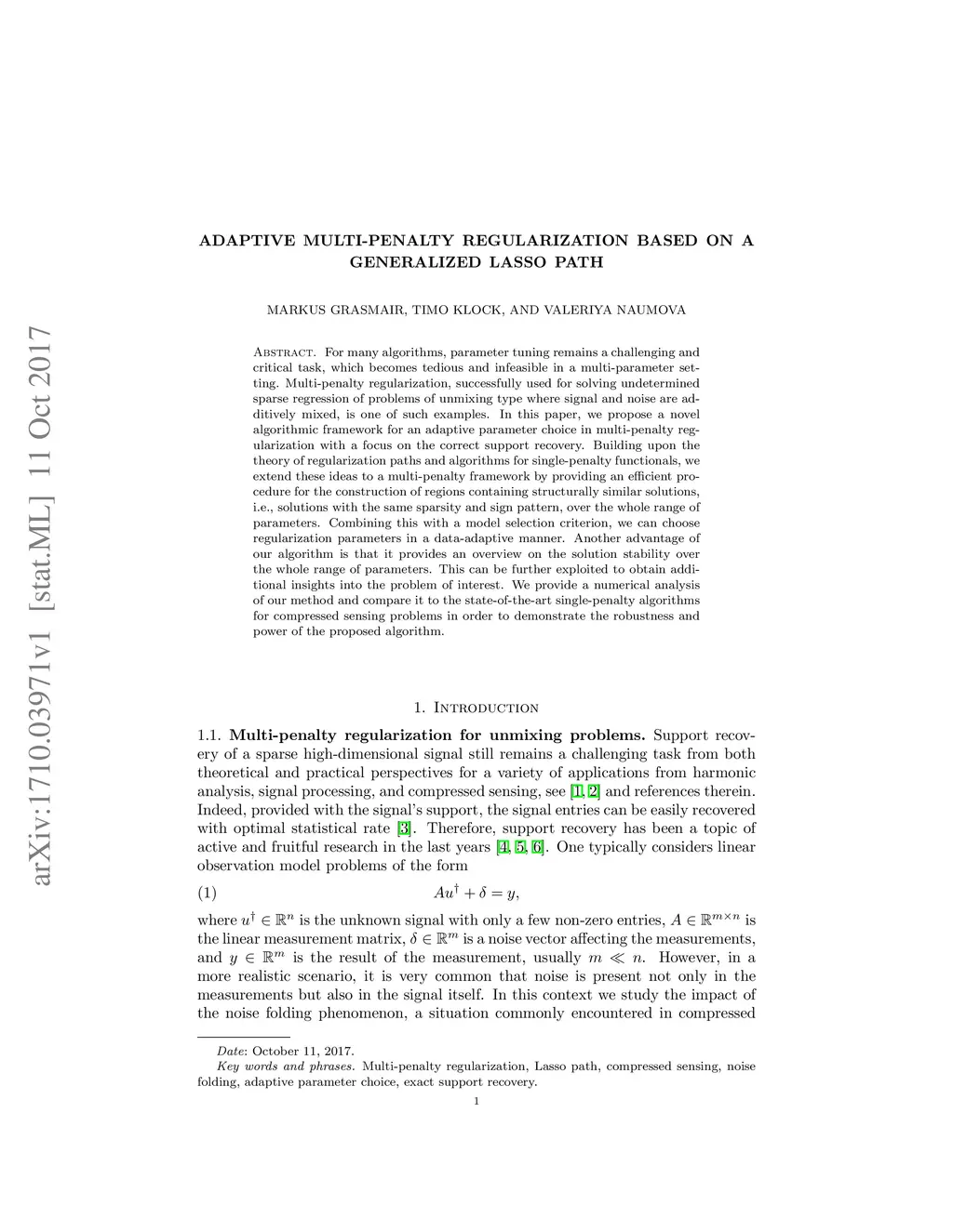 Adaptive multi-penalty regularization based on a generalized Lasso path