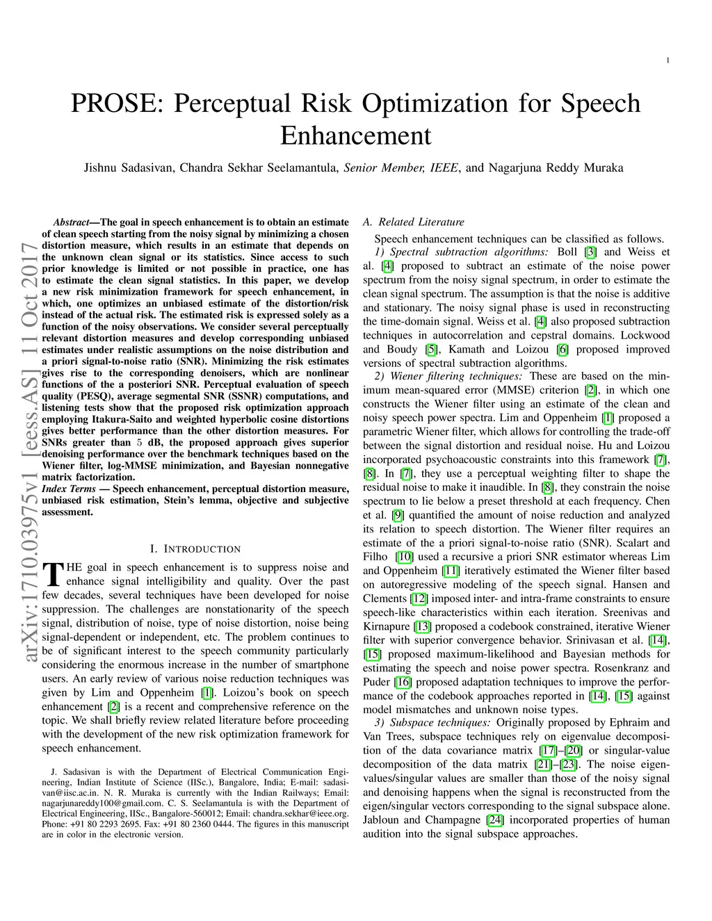 PROSE: Perceptual Risk Optimization for Speech Enhancement