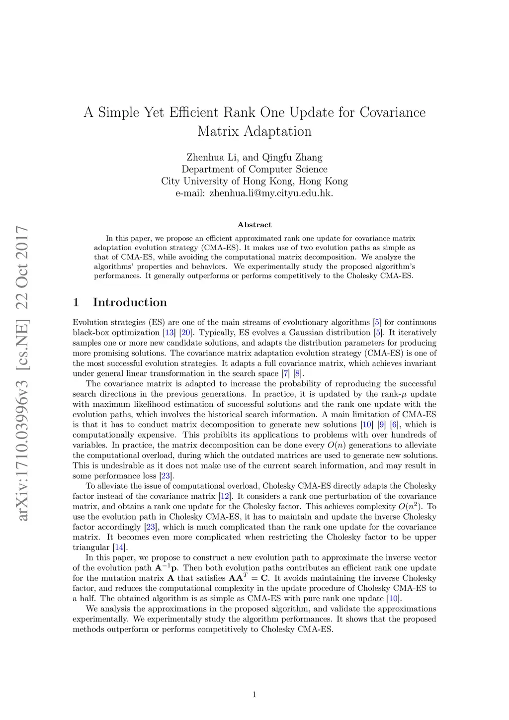 A Simple Yet Efficient Rank One Update for Covariance Matrix Adaptation