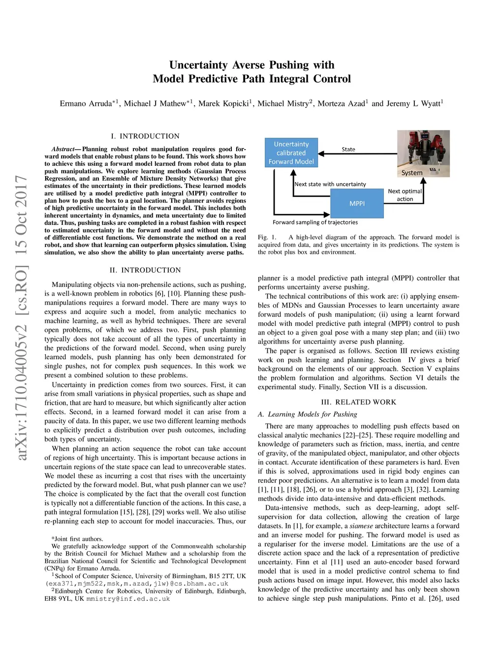 Uncertainty Averse Pushing with Model Predictive Path Integral Control