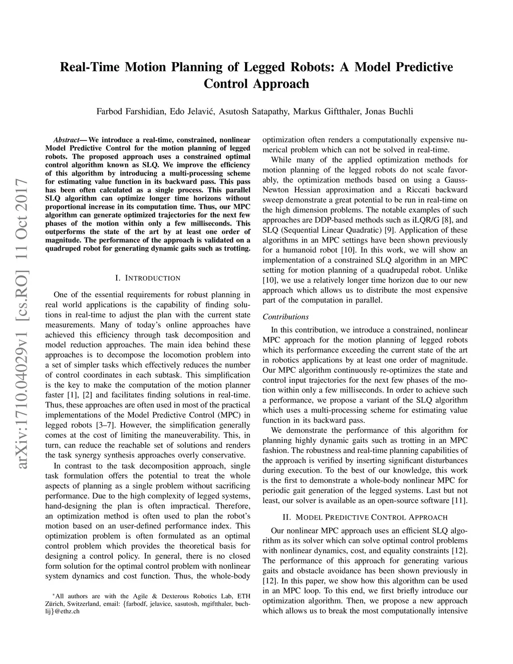 Real-Time Motion Planning of Legged Robots: A Model Predictive Control