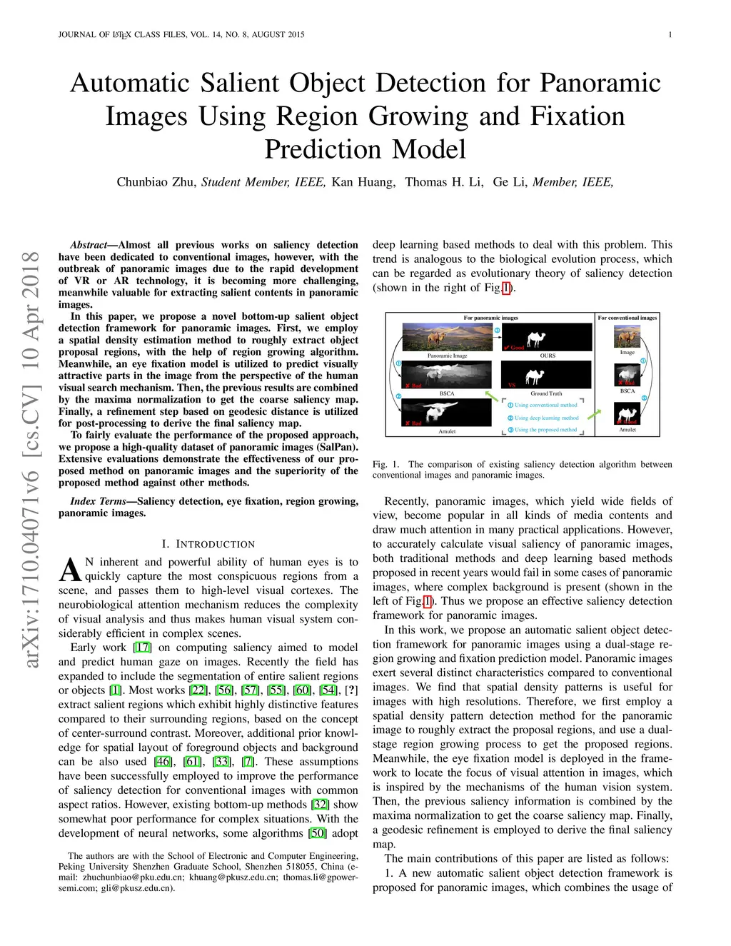 Automatic Salient Object Detection for Panoramic Images Using Region