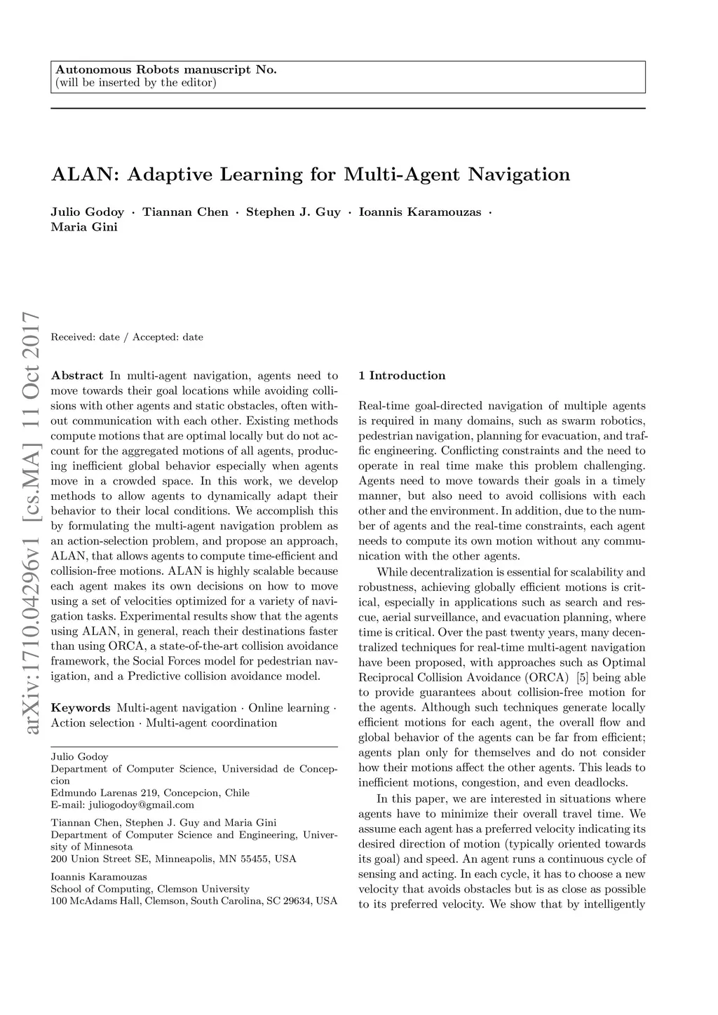 ALAN: Adaptive Learning for Multi-Agent Navigation