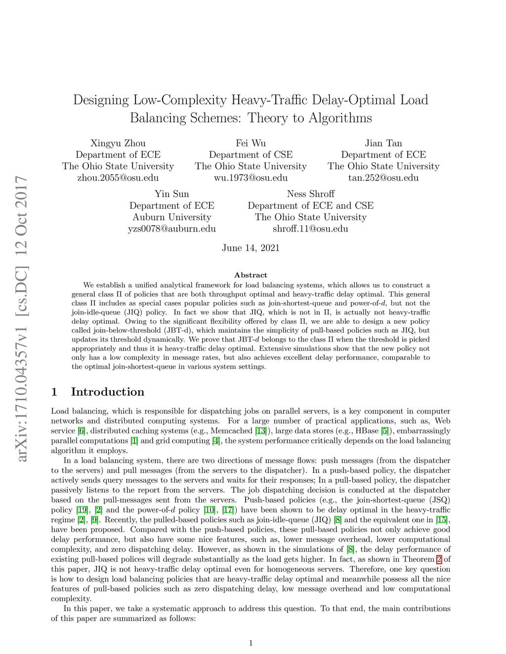 We establish a unified analytical framework for load balancing systems, which allows us to construct a general class of policies that are both throughput optimal and heavy-traffic delay optimal. This general class includes as special cases popular policies such as join-shortest-queue and power-of-, but not the join-idle-queue (JIQ) policy. In fact, we show that JIQ, which is not in , is actually not heavy-traffic delay optimal. Owing to the significant flexibility offered by class , we are able to design a new policy called join-below-threshold (JBT-d), which maintains the simplicity of pull-based policies such as JIQ, but updates its threshold dynamically. We prove that JBT- belongs to the class when the threshold is picked appropriately and thus it is heavy-traffic delay optimal. Extensive simulations show that the new policy not only has a low complexity in message rates, but also achieves excellent delay performance, comparable to the optimal join-shortest-queue in various system settings.
