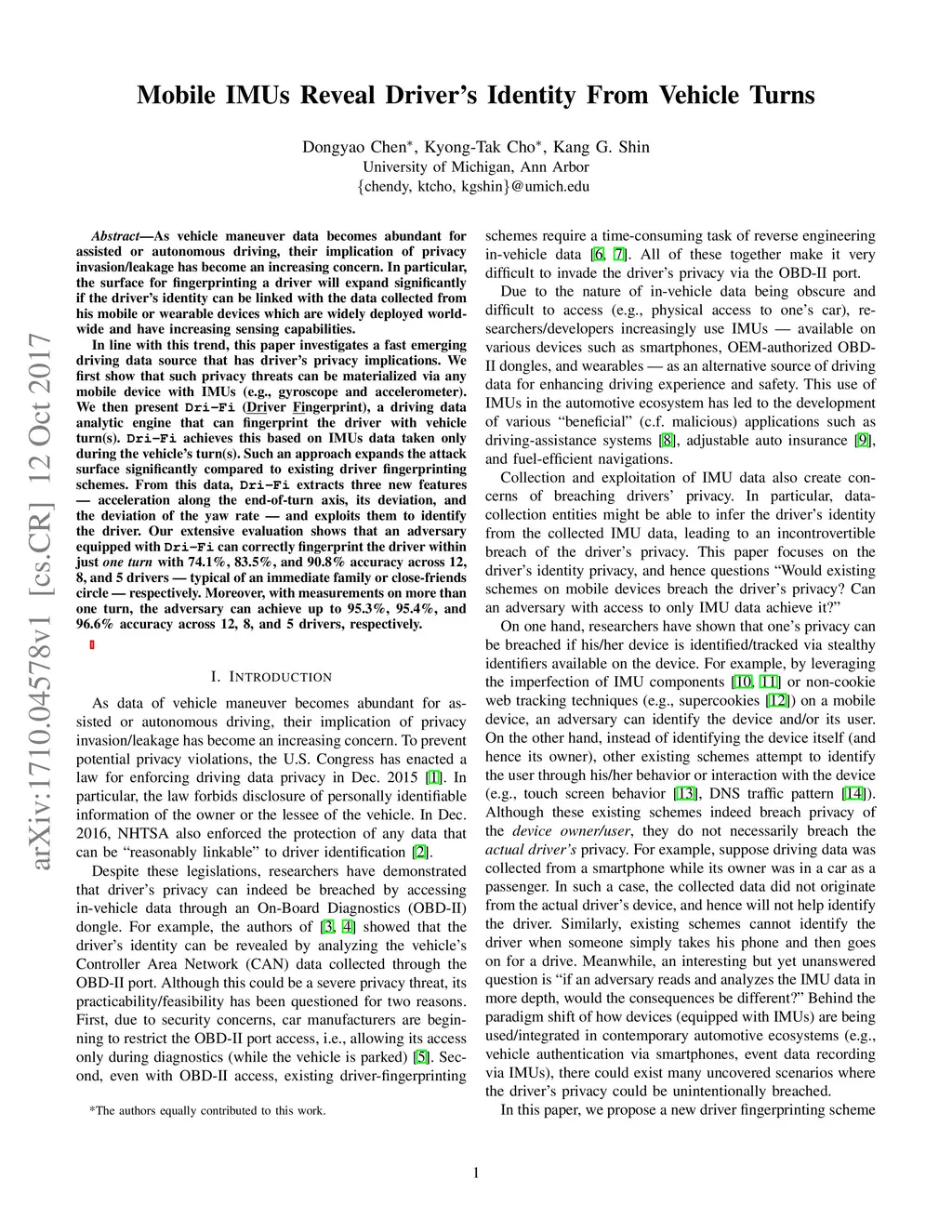 Mobile IMUs Reveal Driver's Identity From Vehicle Turns