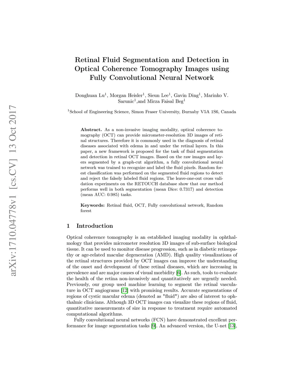 Retinal Fluid Segmentation and Detection in Optical Coherence Tomography