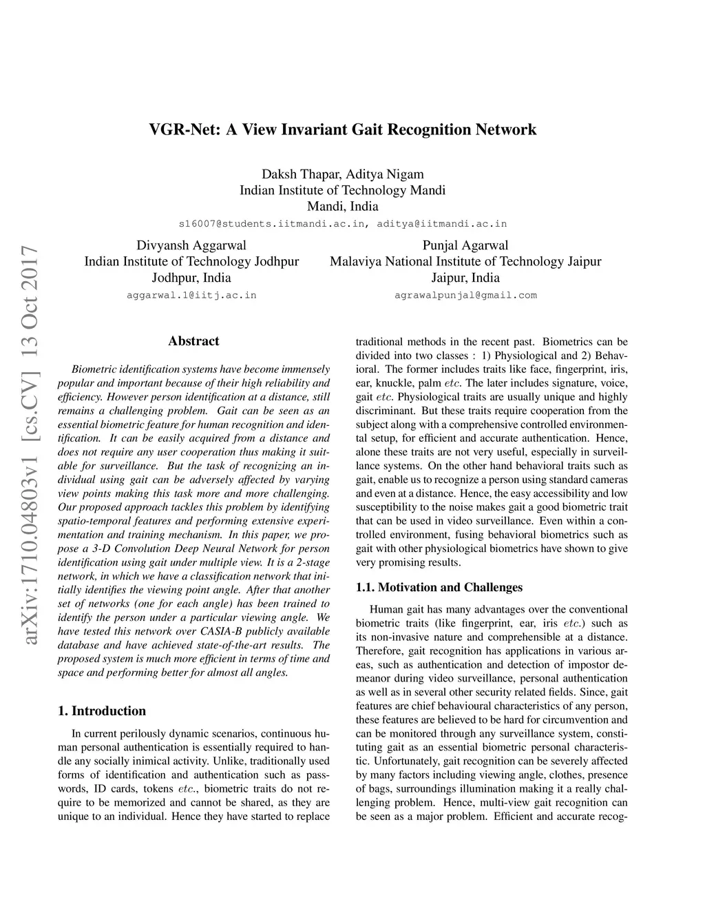 Biometric identification systems have become immensely popular and important because of their high reliability and efficiency. However person identification at a distance, still remains a challenging problem. Gait can be seen as an essential biometric feature for human recognition and identification. It can be easily acquired from a distance and does not require any user cooperation thus making it suitable for surveillance. But the task of recognizing an individual using gait can be adversely affected by varying view points making this task more and more challenging. Our proposed approach tackles this problem by identifying spatio-temporal features and performing extensive experimentation and training mechanism. In this paper, we propose a 3-D Convolution Deep Neural Network for person identification using gait under multiple view. It is a 2-stage network, in which we have a classification network that initially identifies the viewing point angle. After that another set of networks (one for each angle) has been trained to identify the person under a particular viewing angle. We have tested this network over CASIA-B publicly available database and have achieved state-of-the-art results. The proposed system is much more efficient in terms of time and space and performing better for almost all angles.