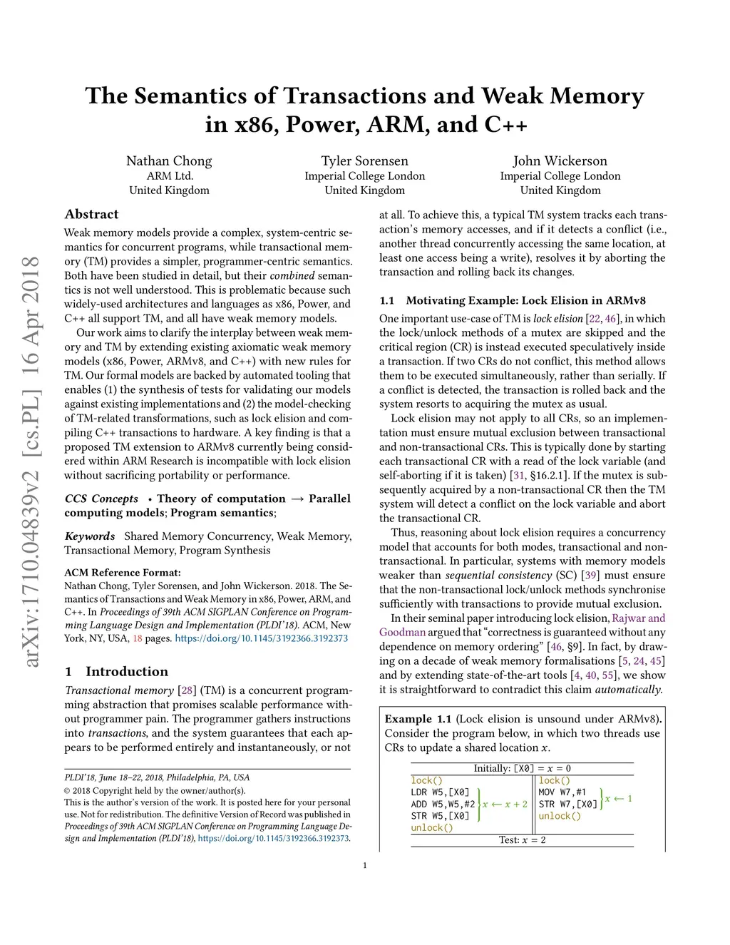 Weak memory models provide a complex, system-centric semantics for concurrent programs, while transactional memory (TM) provides a simpler, programmer-centric semantics. Both have been studied in detail, but their combined semantics is not well understood. This is problematic because such widely-used architectures and languages as x86, Power, and C++ all support TM, and all have weak memory models. Our work aims to clarify the interplay between weak memory and TM by extending existing axiomatic weak memory models (x86, Power, ARMv8, and C++) with new rules for TM. Our formal models are backed by automated tooling that enables (1) the synthesis of tests for validating our models against existing implementations and (2) the model-checking of TM-related transformations, such as lock elision and compiling C++ transactions to hardware. A key finding is that a proposed TM extension to ARMv8 currently being considered within ARM Research is incompatible with lock elision without sacrificing portability or performance.