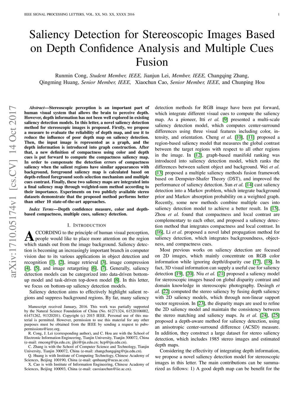 Saliency Detection for Stereoscopic Images Based on Depth Confidence