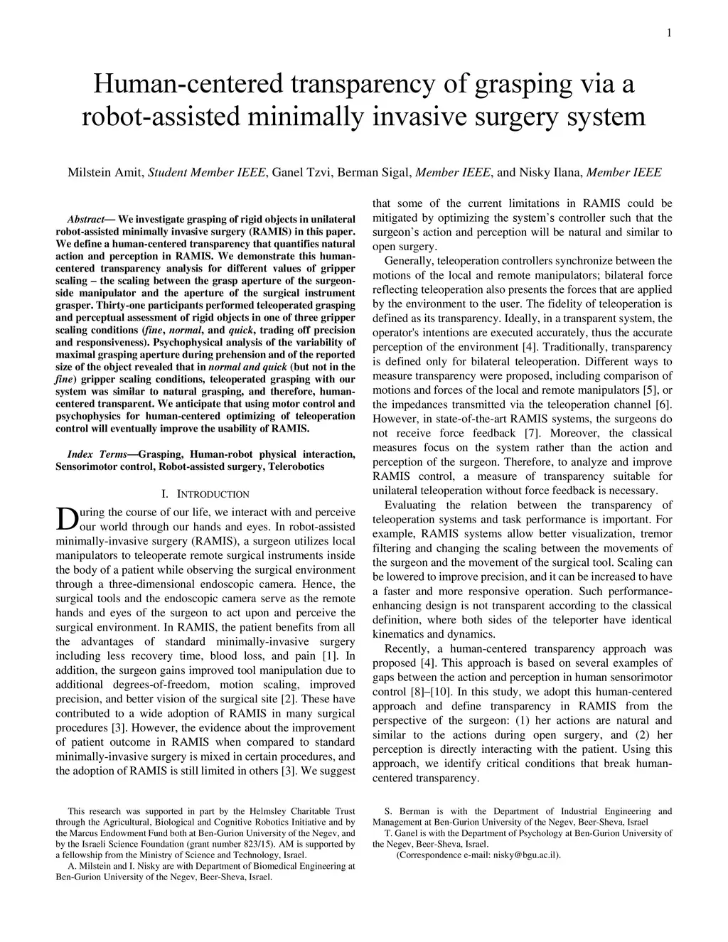 Human-centered transparency of grasping via a robot-assisted minimally