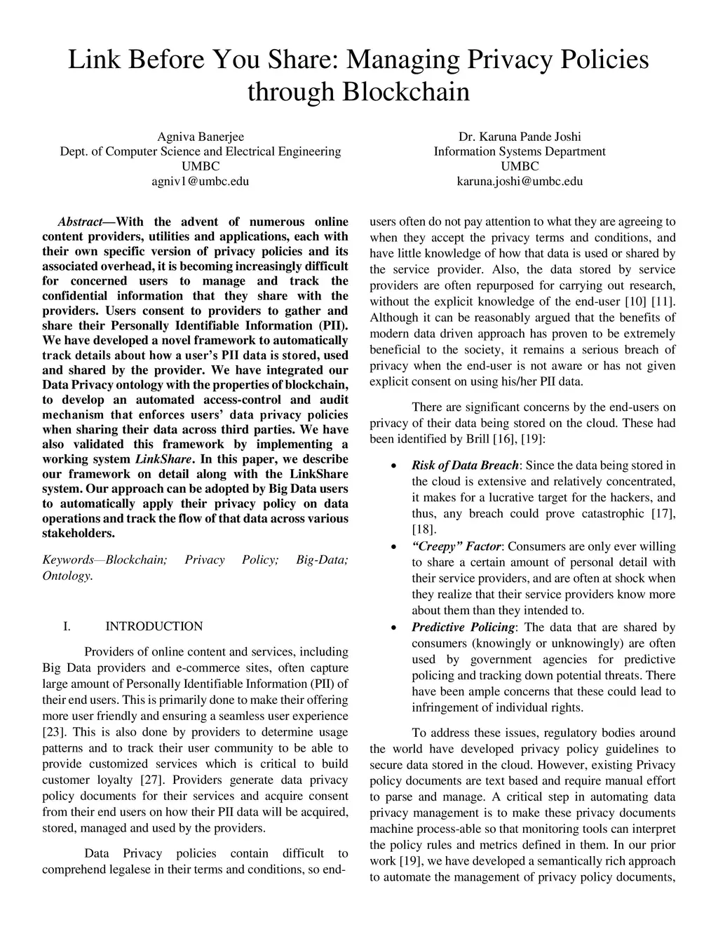 Link Before You Share: Managing Privacy Policies through Blockchain