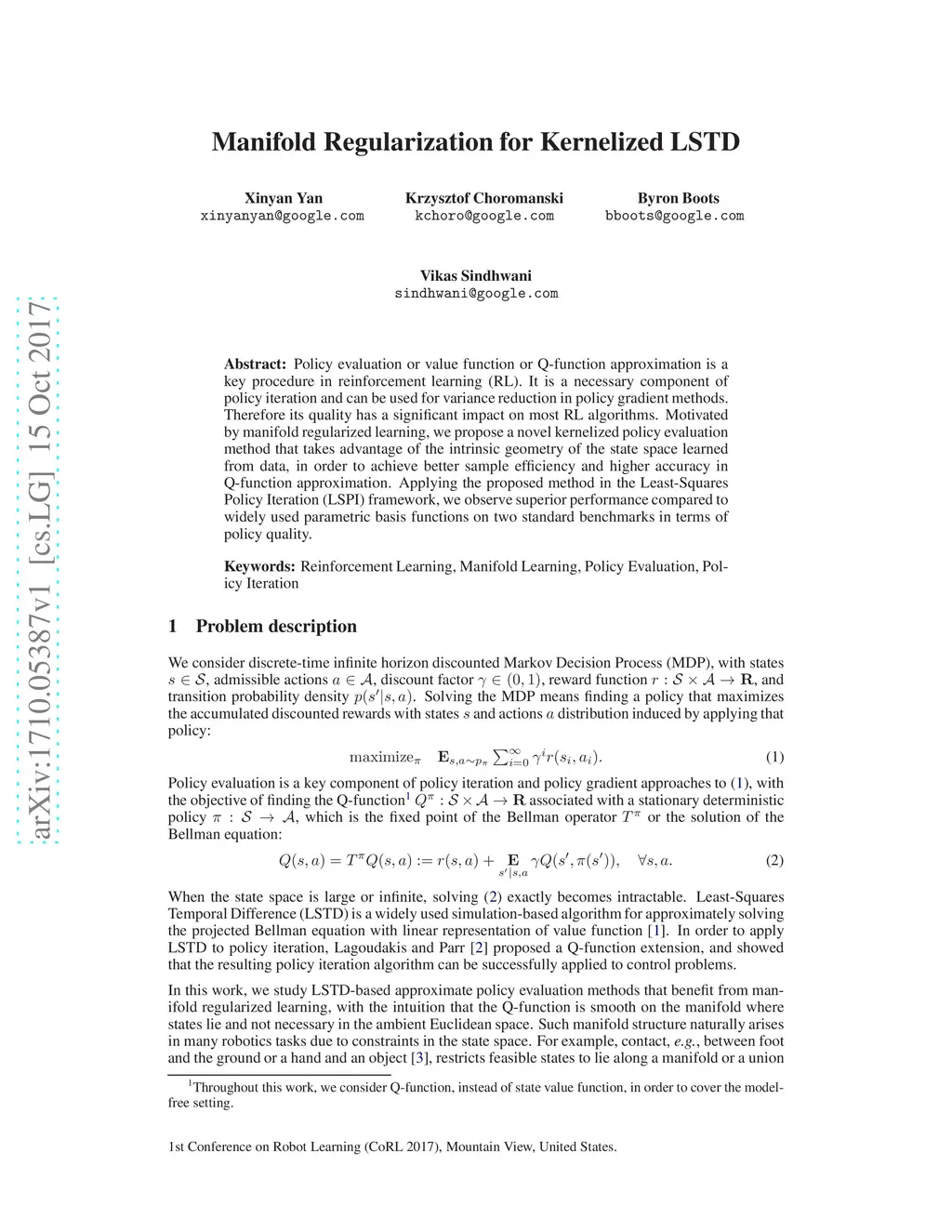 Manifold Regularization for Kernelized LSTD